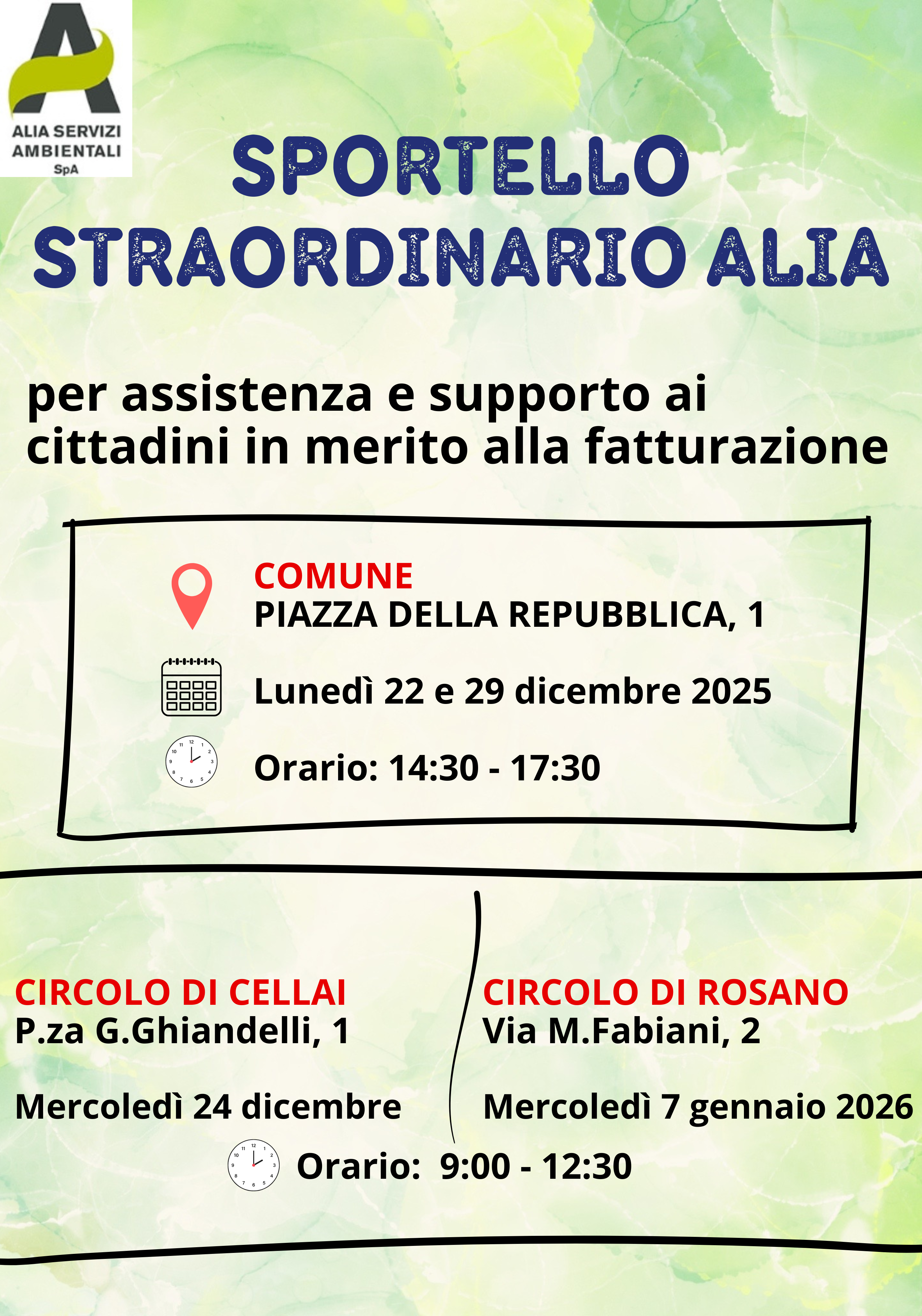 Sportelli straordinari ALIA per assistenza e supporto ai cittadini in merito alla fatturazione: