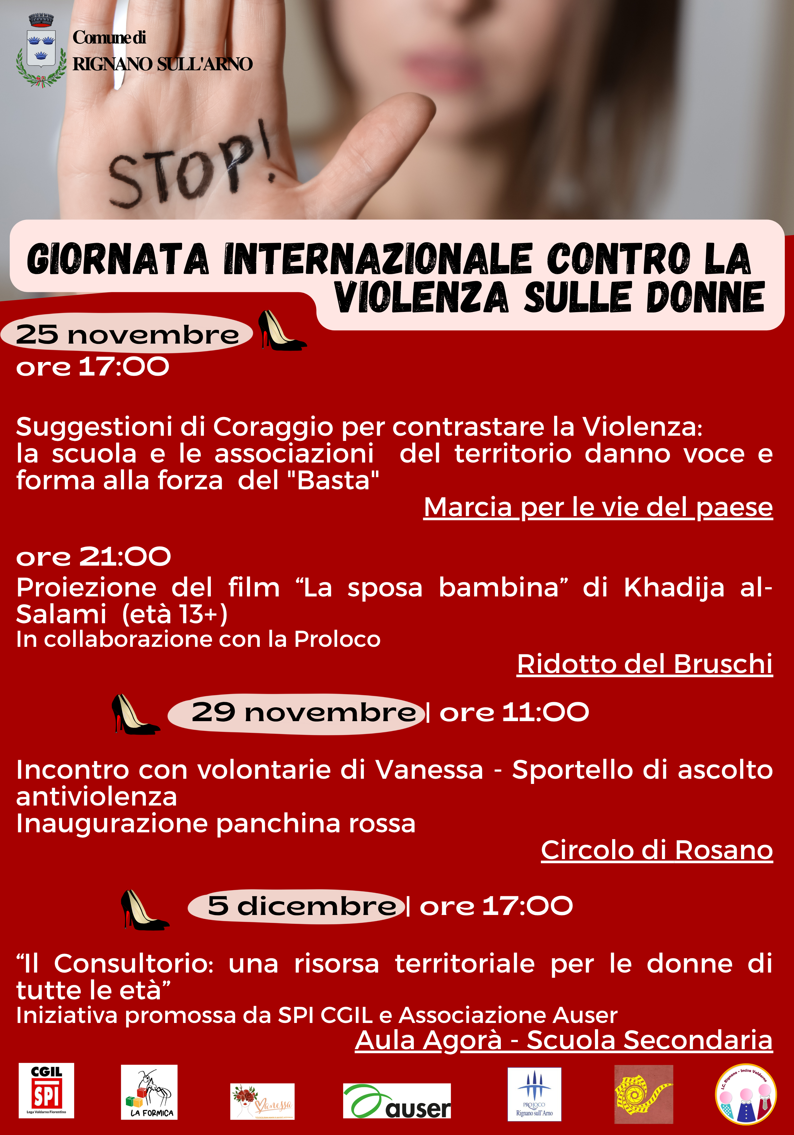 In occasione della Giornata Internazionale contro la Violenza sulle Donne, il Comune di Rignano sull’Arno promuove una serie di iniziative volte alla sensibilizzazione e al contrasto della violenza di genere, in collaborazione con scuole, associazioni e realtà territoriali.