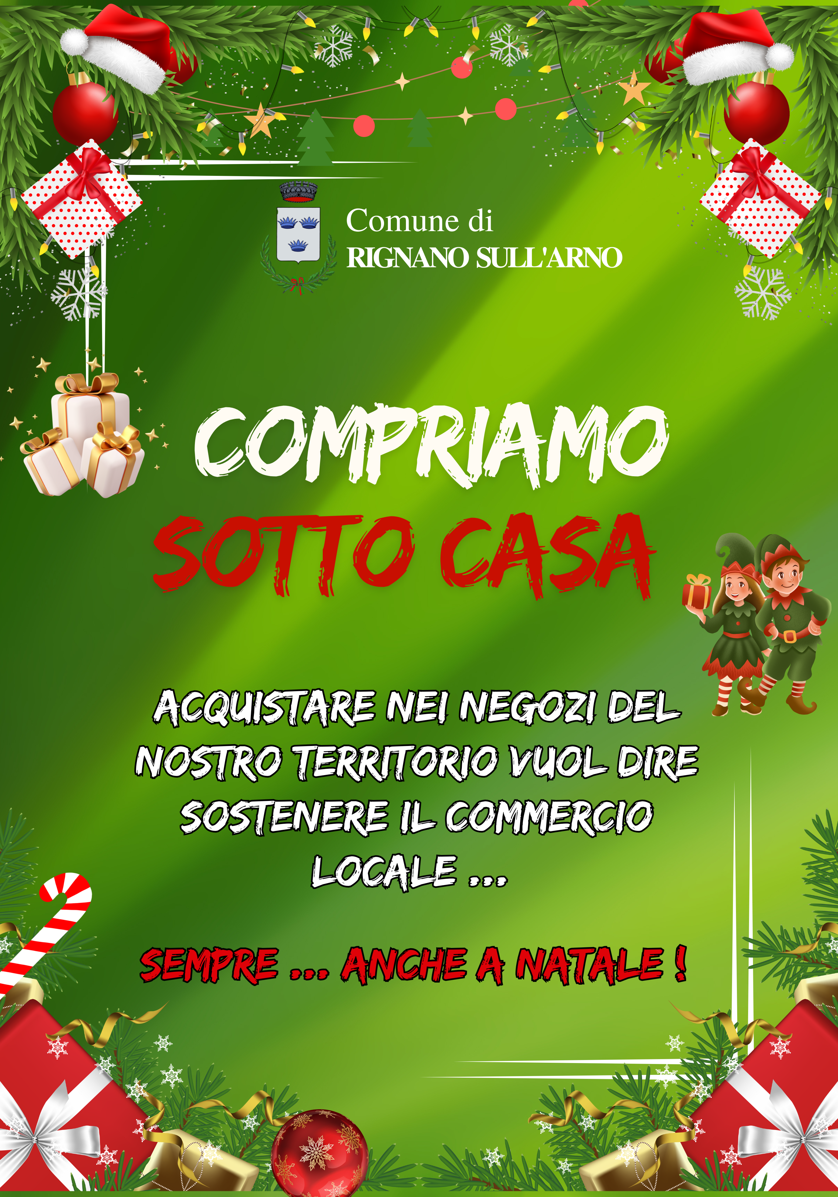 L'amministrazione lancia anche quest’anno la campagna “Compriamo Sotto Casa”, un invito rivolto a tutti i cittadini a sostenere le attività commerciali del territorio.