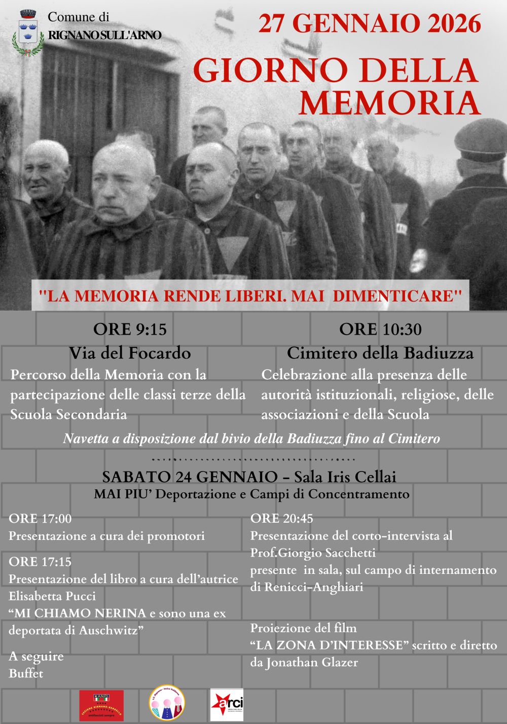 Le iniziative dell'ANPI invece ci saranno sabato 24 gennaio presso la Sala Iris Cellai, con l’incontro dal titolo “Mai più. Deportazione e campi di concentramento”.
