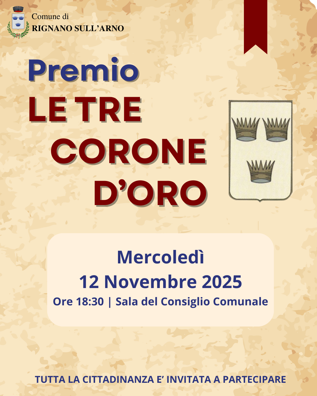 In occasione della Festa del Patrono, l'Amministrazione Comunale premierà con la benemerenza "Le Tre Corone d'Oro" chi si è distinto con opere concrete per il bene della comunità rignanese.