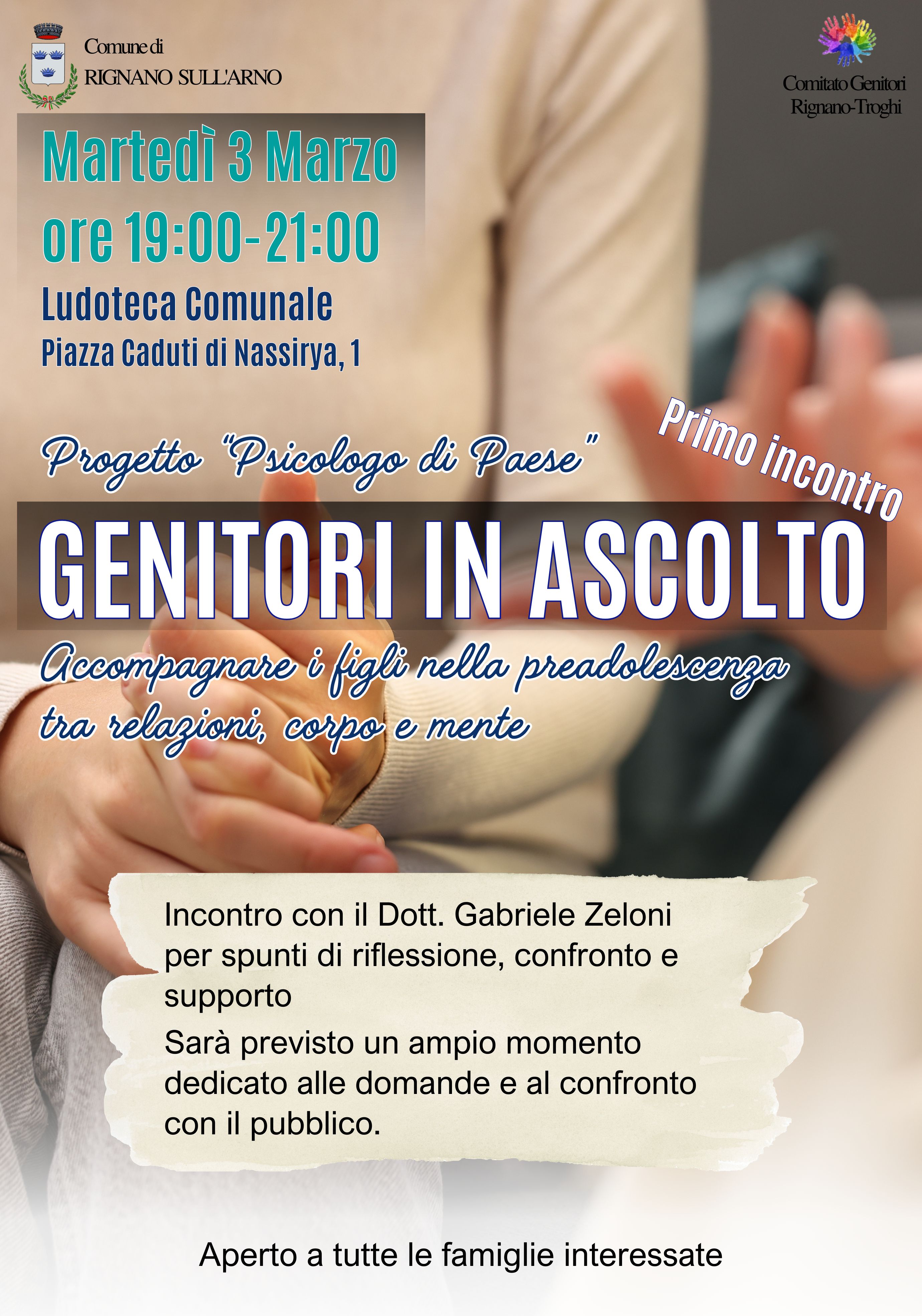 L’iniziativa è realizzata in collaborazione con lo Psicologo Dott. Gabriele Zeloni – Direttore UOS Psicologia e Dirigente nella UFSMIA Zona Fiorentina Sud Est/mugello, che condurrà la serata, e con il Comitato Genitori di Rignano e Troghi, a conferma dell’impegno condiviso nel sostenere le famiglie nel loro delicato e complesso ruolo educativo.